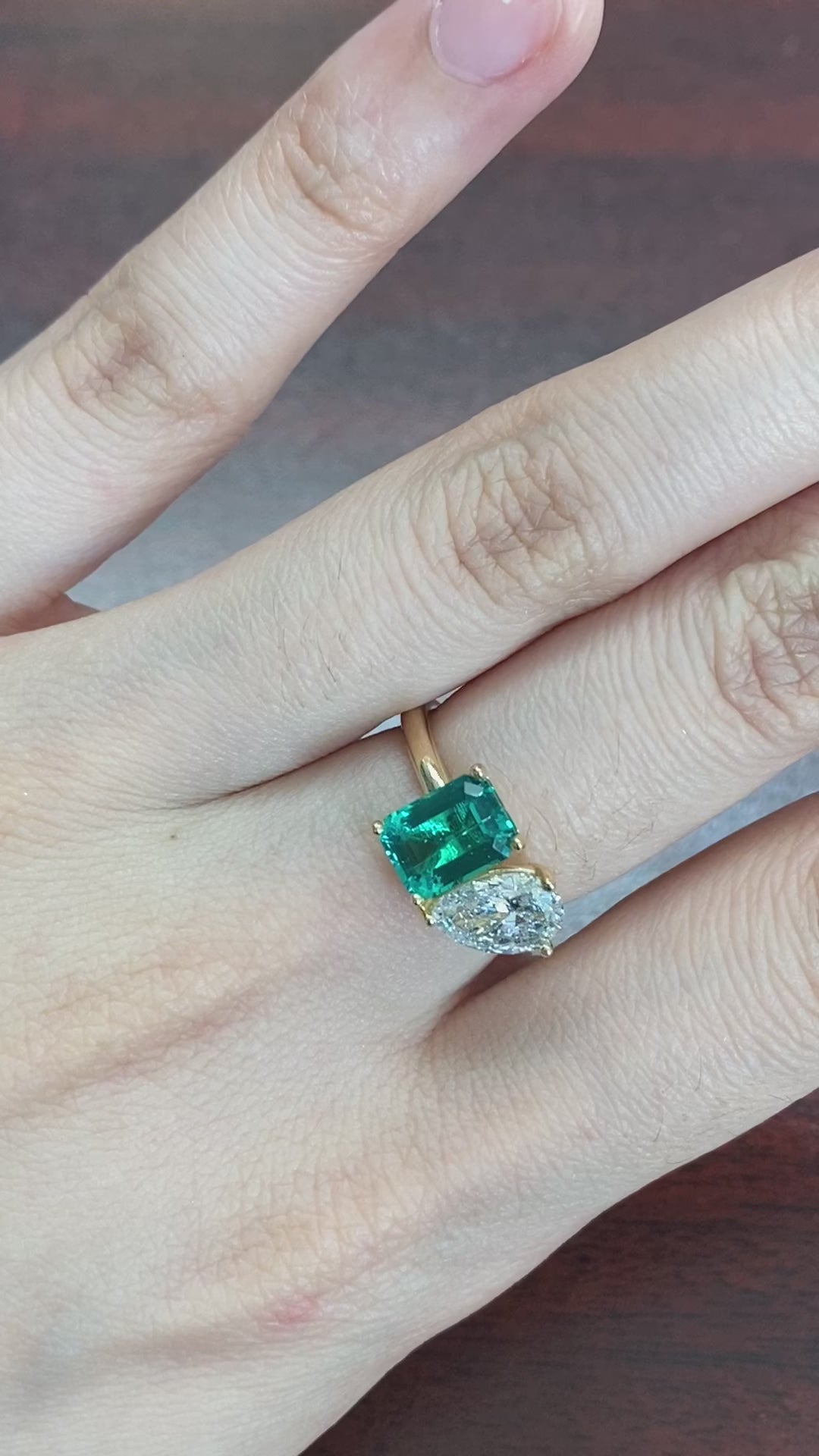 Toi Et Moi Ring Emerald And Diamond 18kt Yellow Gold