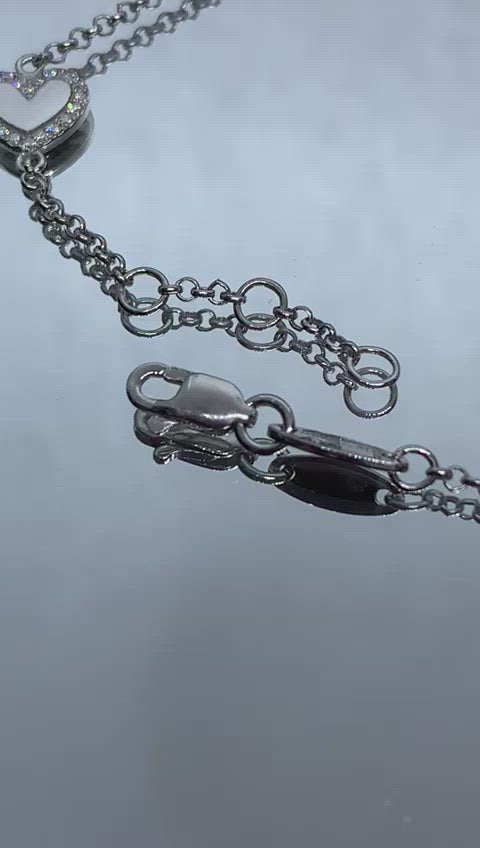 Ce bracelet cœurs à 3 diamants en or 18 carats présente des breloques en forme de cœur, serties de diamants. À l'intérieur se trouvent 3 diamants ronds, pesant un total d'environ 0,30 ct. Le bracelet est disponible en or blanc, jaune ou rose 18 carats.