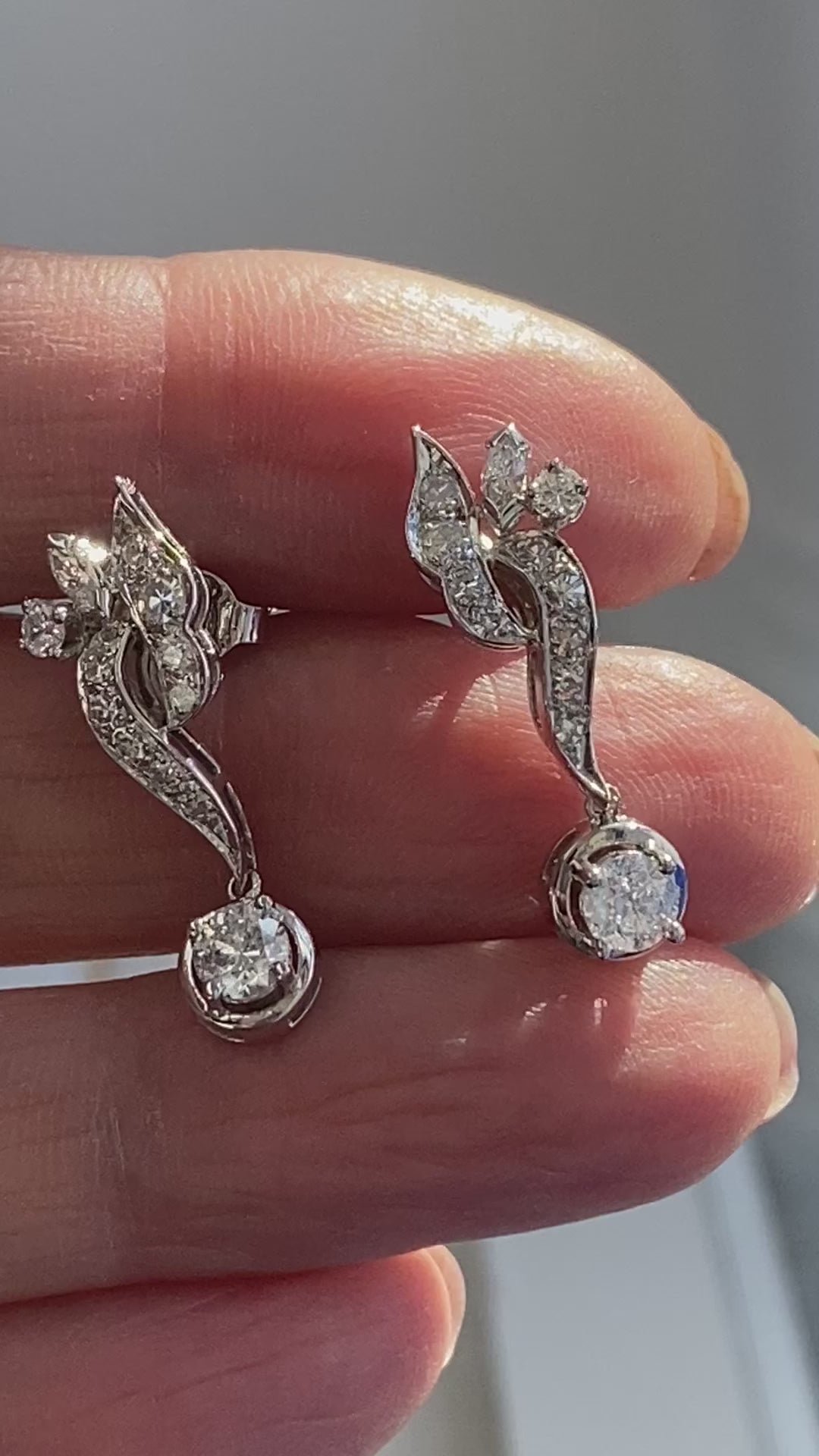 Parfaites pour les occasions nuptiales, ces nouvelles boucles d'oreilles vintage en diamant pèsent 3,18 grammes et pendent élégamment à 2,4 cm de l'oreille, ce qui en fait un choix sophistiqué pour tout événement spécial.
