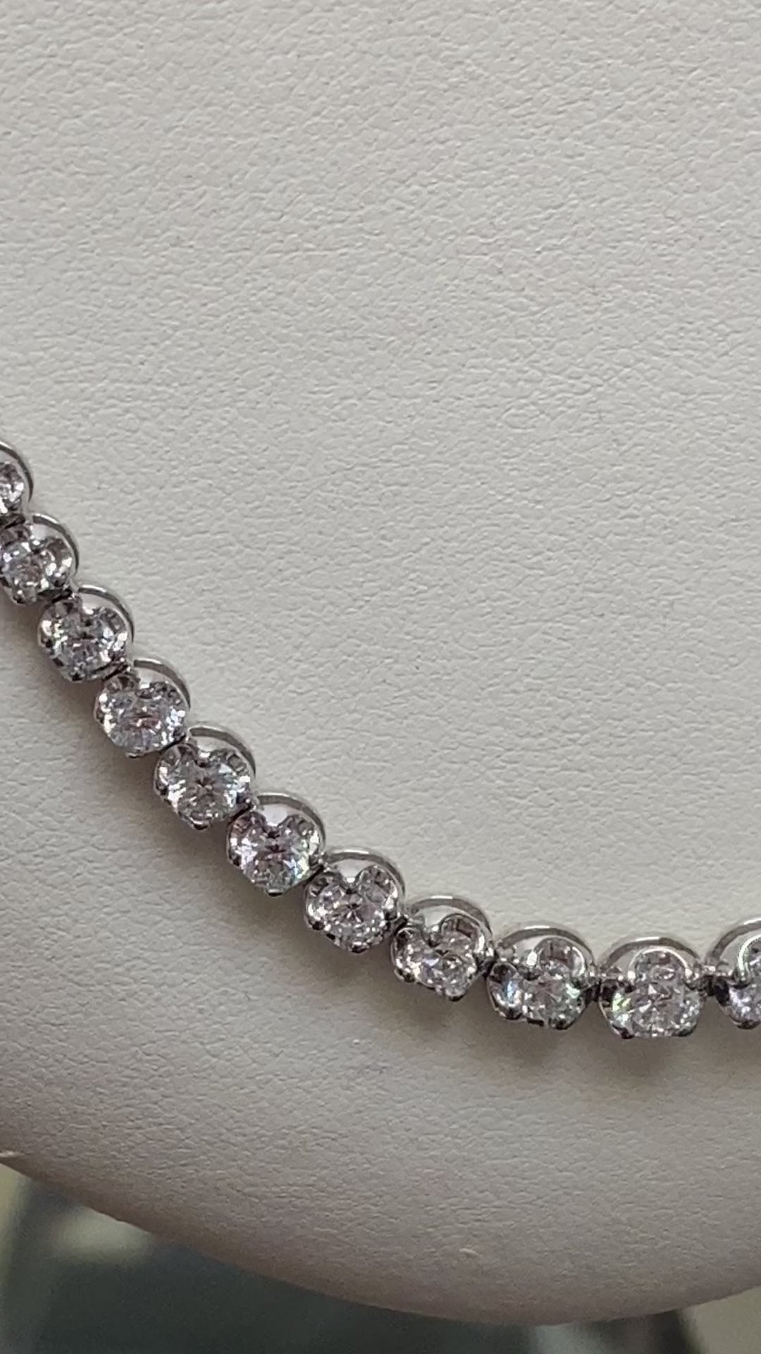 Cette pièce exquise présente des diamants ronds de laboratoire, d'un poids total d'environ 7,00 carats, dont la taille varie de 6 mm à 2,60 mm. Les diamants ont un indice de pureté VS2/FG, tandis que le collier lui-même pèse 16,23 grammes.