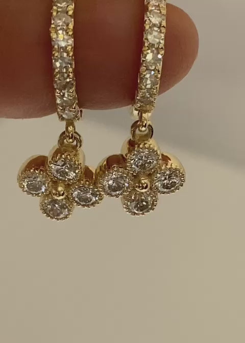 The Huggies-style setting, adorned with 16 exquisite 2.0mm diamonds - 0.48 ct.tw approx, perfectly complements; the dangling flowers.