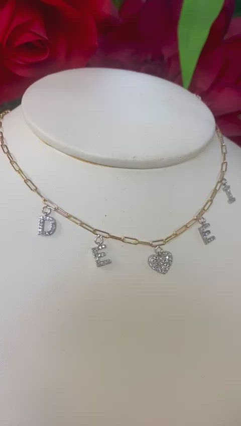 This Diamond initials D, E, I, and Heart Pendant Family necklace is made to order.