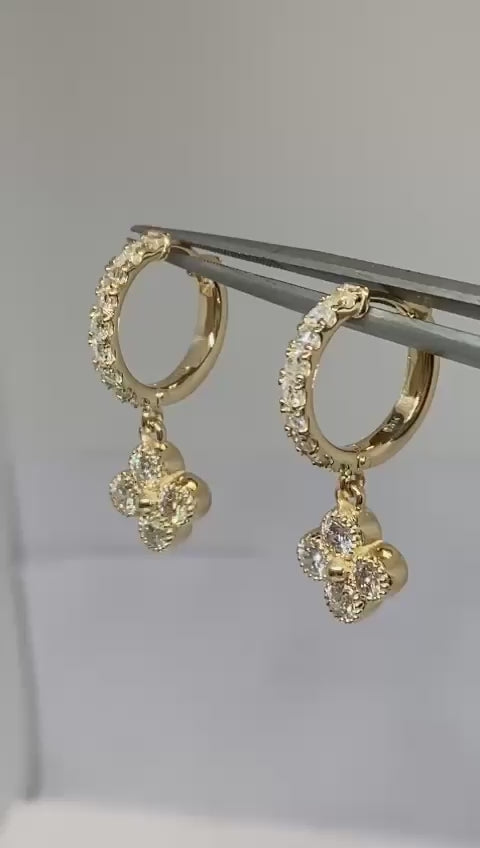 Flower Drop Diamond Huggies Earrings 14K Yellow Gold