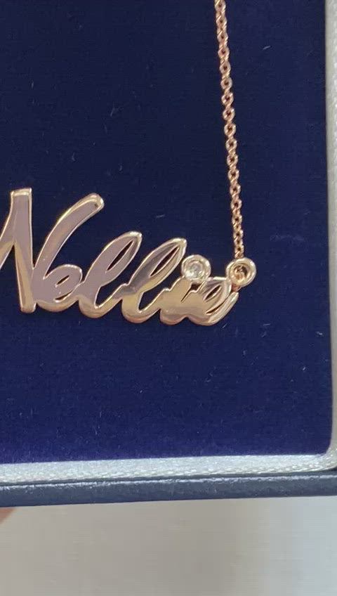 Personalized Diamond Name Necklace Nellie made of 14k Gold and Diamonds.
