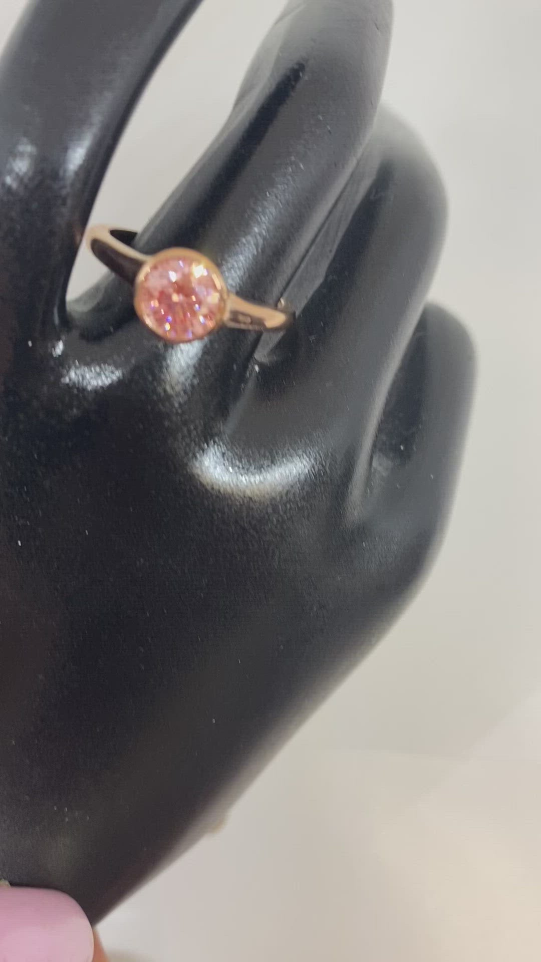 This Pink Diamond Rose Gold Ring is studded with a breathtakingly beautiful lab-grown pink diamond in a knife-edge bezel setting.