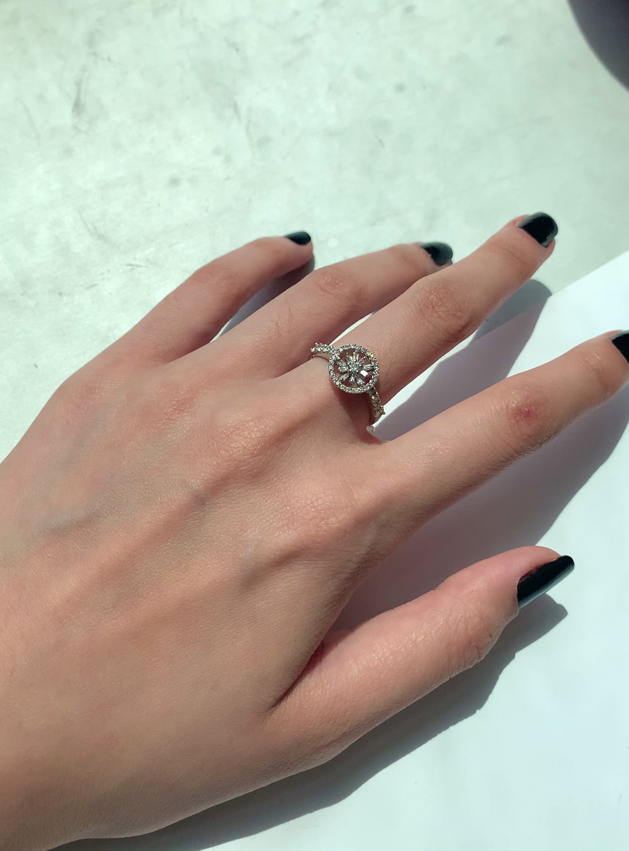 Round and Baguette Diamond Flower Ring